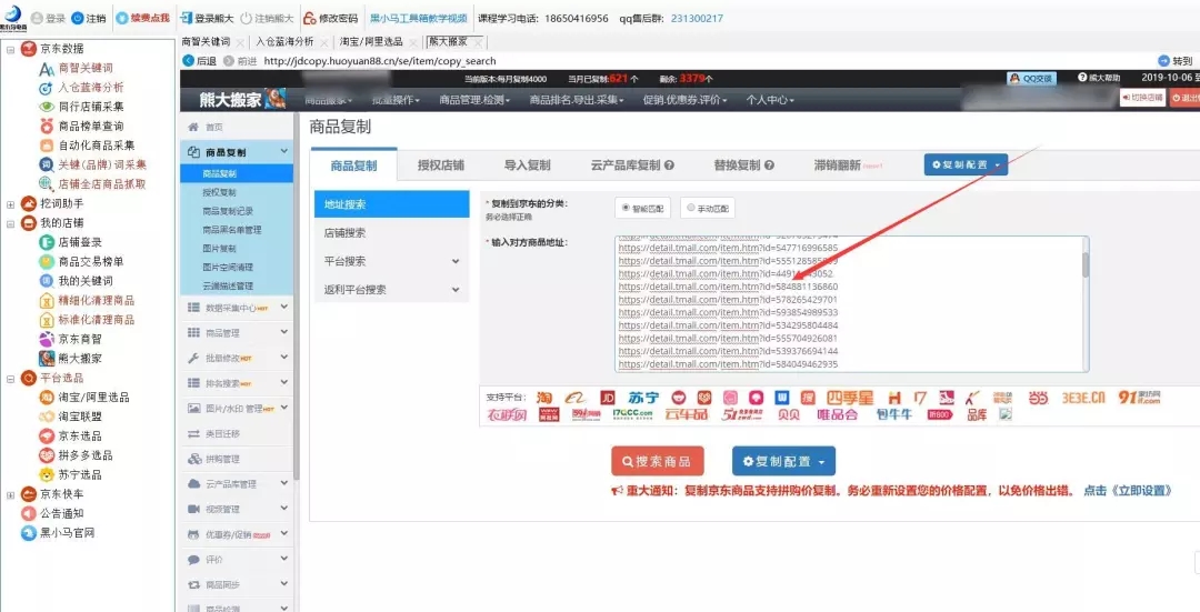 批量抓取就是将我们已有的商品链接,复制到文本框,进行多链接复制。